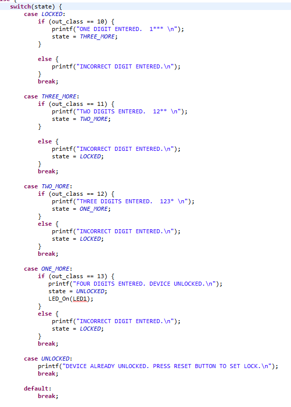“9”. Look at the case labeled LOCKED (case LOCKED:). It contains an if statement which