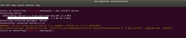 With Vitis AI loaded, activate TensorFlow with the command (Figure 36).