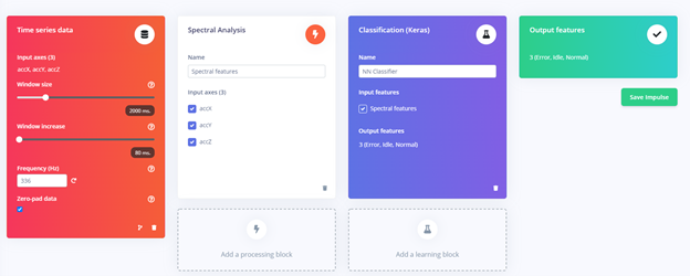 Let's create the impulse, which takes our raw data, uses signal processing to extract features, and then uses a