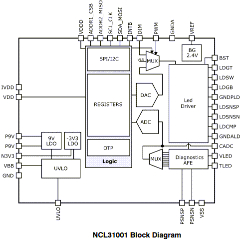 Abbildung 2: Blockdiagramm der LED-Treiber NCL3100X